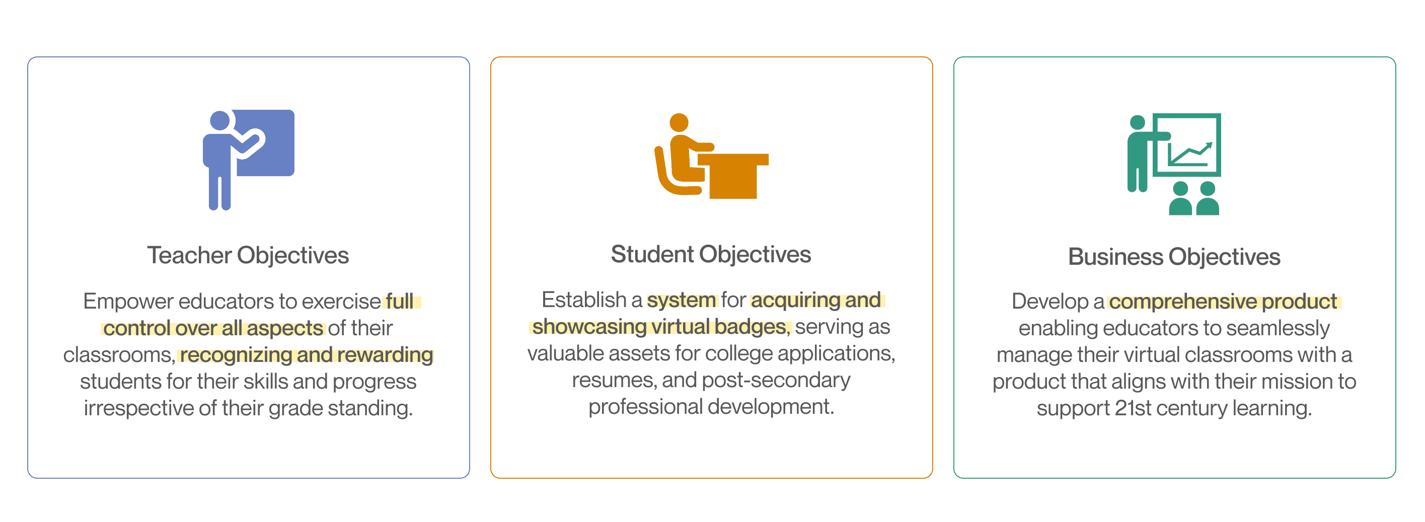Through thorough secondary research and competitive analysis, I unearthed the value of digital badging for both students and teachers, informing key features to implement in our design.