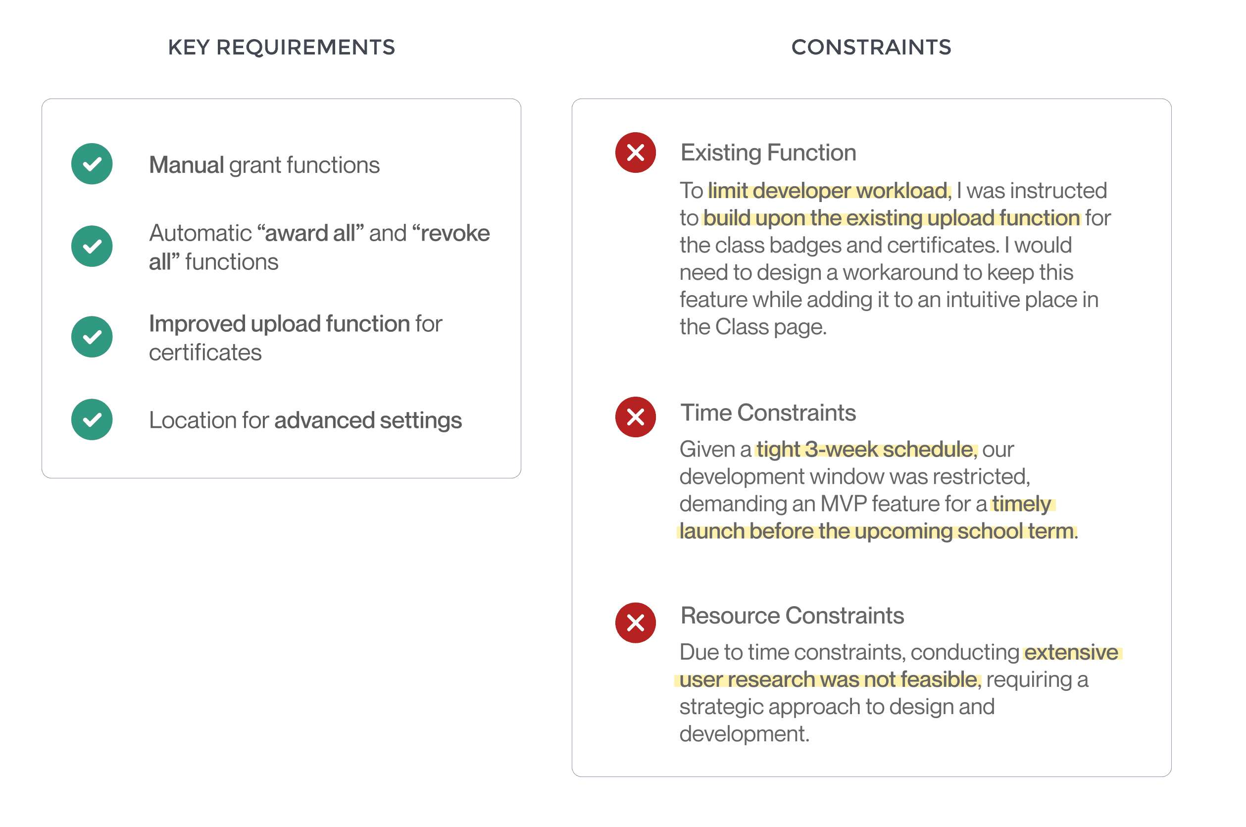 This project brief was given to me by our business development and customer service teams. Teachers, who were utilizing third-party digital badging products, expressed a strong need for a comprehensive badging and certificates feature within eKadence.