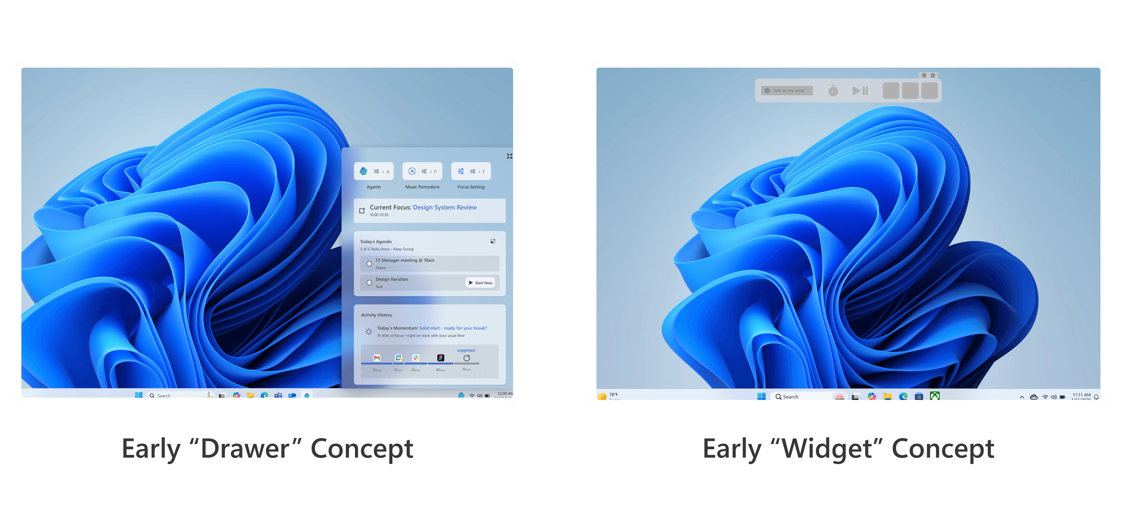 To translate our design principles into an interface, we explored what it would mean for Flow to exist like a true system-level companion. Rather than living as a traditional app, we imagined it operating quietly across the user’s workflow.