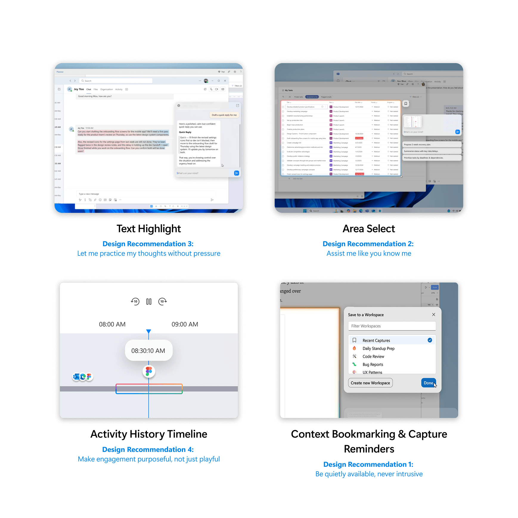 When enabled, Flow captures a live timeline of the user’s workflow, generates smart summaries of recent activity, and allows users to seamlessly return to the apps, links, or tasks they were previously working on. By reducing the need to manage multiple windows and tabs, Activity History minimizes the mental friction of context switching and helps users re-enter their work with clarity.